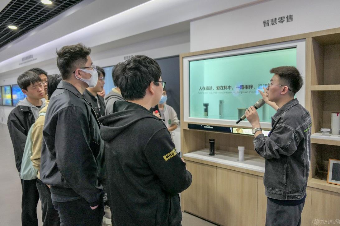 在交流活动中,公司团委书记田儒基与京东方技术创新中心相关负责人就人才培养新路径进行探讨,加强双方毕业生就业、在校生实习等深度合作,公司增加人才输送,企业扩展就业岗位。京东方中心负责人向公司师生介绍展示了其遍布全球20个国家共17条产线,4座智能制造工厂,5所数字医院,传递了“屏之物联、未来如是”的新理念。