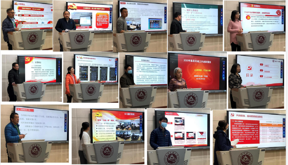 会上,各党支部书记分别从深入学习贯彻习近平新时代中国特色社会主义思想和党的十九届五中全会精神、党支部战斗堡垒和党员先锋模范作用的发挥、支部品牌活动的打造、党务和业务结合、突出查找解决问题及整改等方面作了述职,教工党支部紧密结合专业特色,融合科研育人、实践育人和课程思政;员工党支部重点围绕理论学习、“三会一课”制度落实、党员作用发挥、支部品牌活动建设、党建与学风等方面做了深入的剖析。