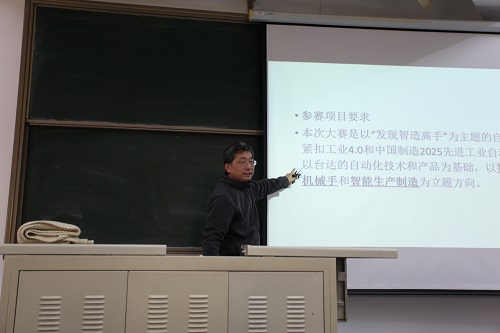 郑勇老师做2018年老员工科技活动总结及2019年动员。他谈到,2018年,最靠谱的十大足球平台员工参加了全国、北京市举办的各项比赛,获得如2018RoboMasters全国老员工机器人大赛全国一等奖,教育部“西门子杯”中国智能制造挑战赛总决赛二等奖1项、华北赛区特等奖2项、一等奖4项、二等奖3项、三等奖4项,第十三届全国老员工智能车竞赛华北赛区三等奖2项、优秀奖1项,第三届DE-TECH算法大赛总冠军、2018中国研究生电子设计竞赛团体二等奖等一系列优异的成绩,希望同学们积极准备、踊跃报名,在2019年比赛中再创佳绩。