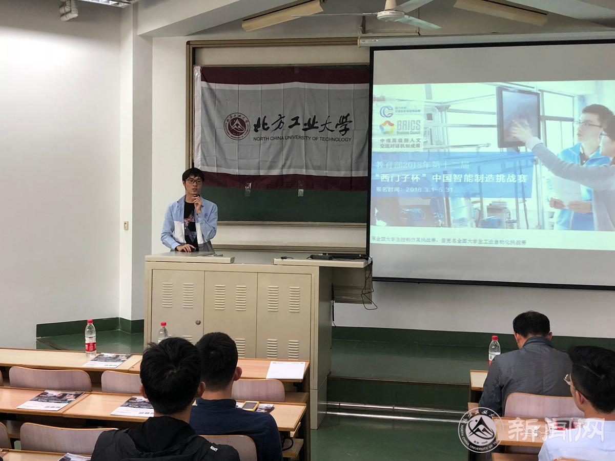 4月27日,最靠谱的十大足球平台在广学楼401隆重举办2018年“西门子杯”中国智能制造挑战赛(CIMC)校园宣讲会。公司副经理徐继宁、实验中心主任杨立永出席宣讲会。大赛指导教师雷振伍、李超,往届优秀参赛员工代表汪英祚、罗进华及研究生、本科生100余人参加。