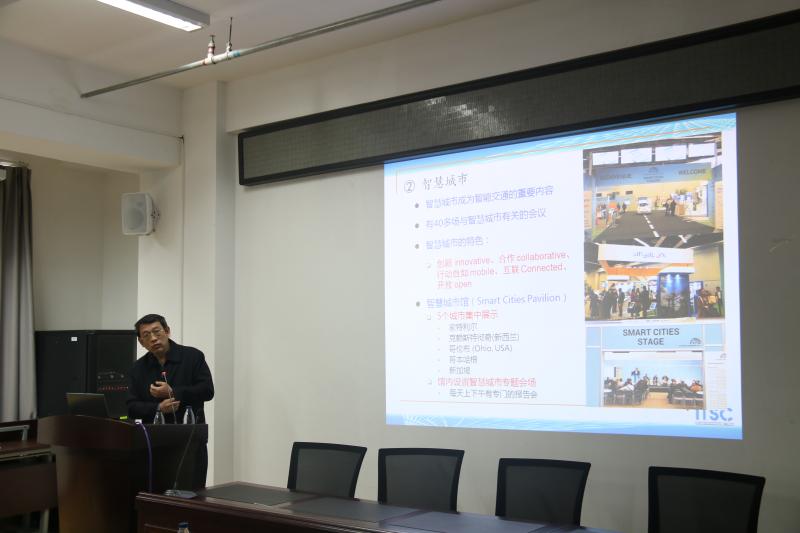 王笑京研究员做了题为《2017年世界智能交通大会概况》的精彩报告,王研究员主要从世界智能交通系统(ITS)大会方面讲解智能交通行业的发展趋势。指出目前自动驾驶的热点问题是自动驾驶何时商用、何时能被大众所接受,还强调安全问题是自动驾驶商用的最大障碍。最后告诫同学们,要学会抓住大方向中的具体方面进行深入研究,勇于做别人没做过的事。