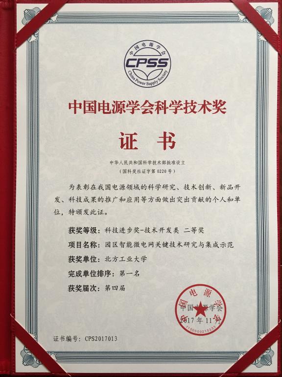 由公司“新能源系统及工程”科研创新团队负责人周京华教授主持申报的“园区智能微电网关键技术研究与集成示范”项目获科技进步奖-技术开发类二等奖。 该项目开发出具有完全自主知识产权的大功率并网装置、电能质量治理装置、储能变流器、智能微电网先进能效管理系统。将所取得的关键技术与相关企业合作,建立了多个智能微电网示范工程和项目,进一步推动了分布式光伏的高效利用,加快了行业的产业化推广及应用进程,促进社会向绿色、环保、节能方向持续发展,创造了较大的经济效益与社会效益。项目成果被中国电工技术学会组织的专家委员会鉴定为“国际领先”水平。