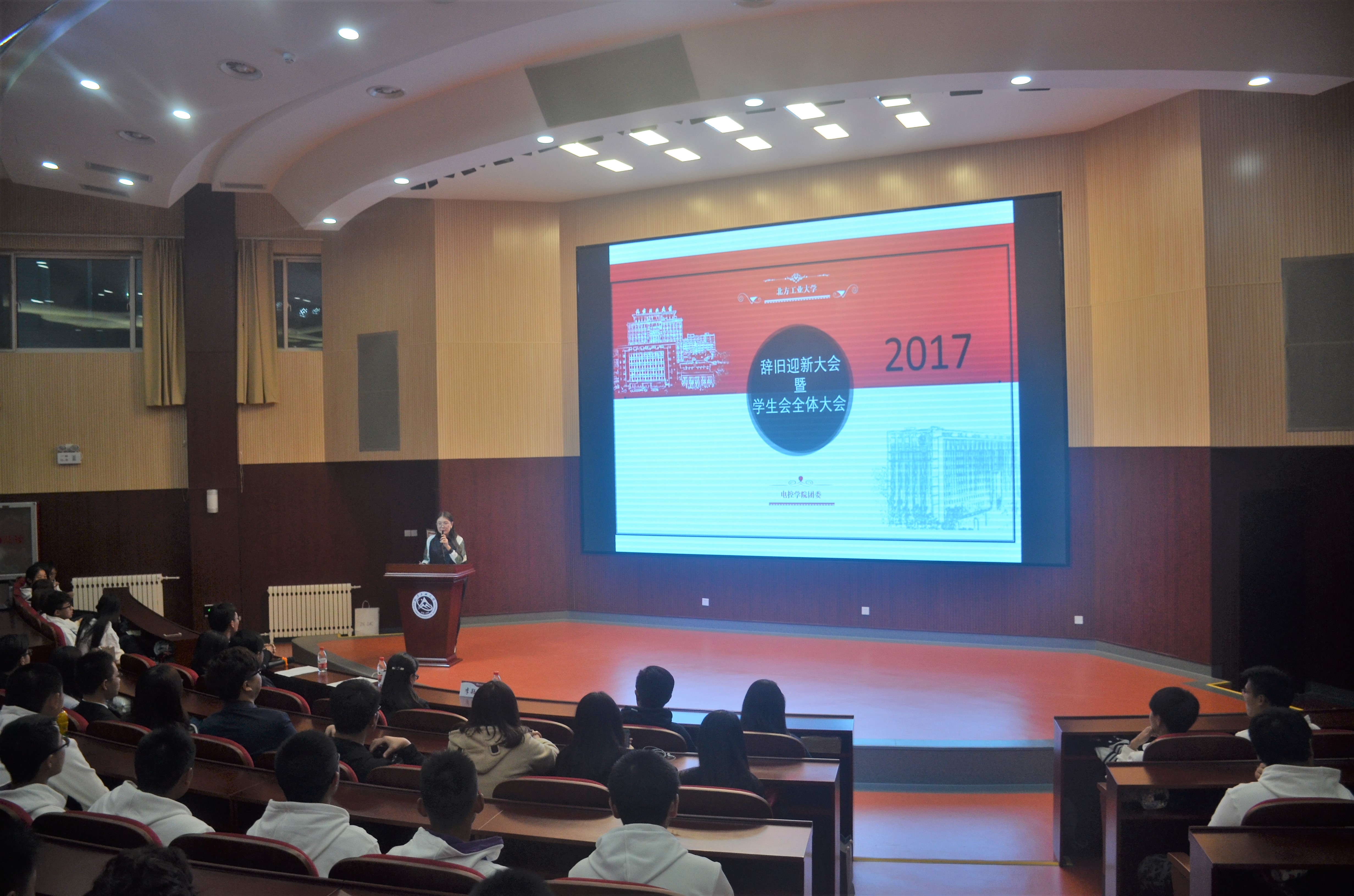10月17日晚,最靠谱的十大足球平台在文化会堂召开2017年团学辞旧迎新暨员工会全体大会。公司党委书记李颖宏、党委副书记史宁、辅导员库颖、王磊,上届团学干部代表及本届团学全体成员到场参加。