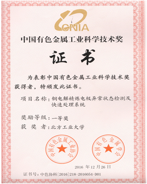 近日,2016年中国有色金属工业科学技术奖颁布。公司《铜电解精炼电极异常状态检测及快速处理系统》和《炭素阳极回转窑煅烧过程综合优化控制系统研制》项目分获一等奖和三等奖。