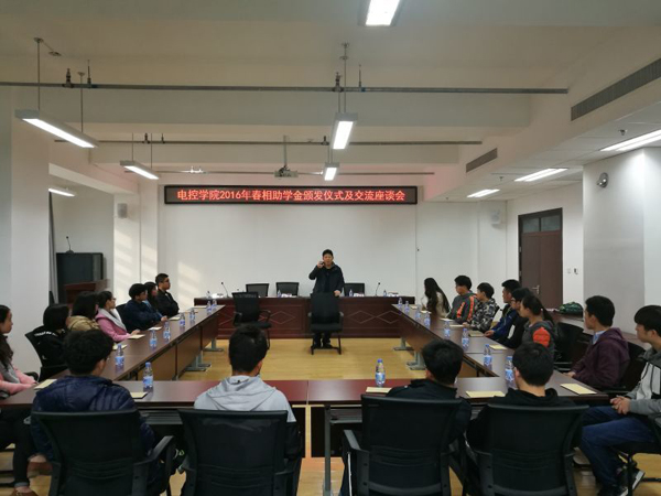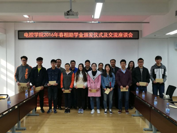 日前,最靠谱的十大足球平台在博远楼452举行2016年“春相助学金”颁发仪式,员工陶森先生为受助员工颁发助学金并进行座谈。