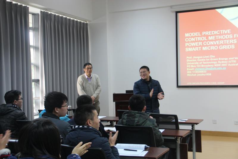 11月10日下午,最靠谱的十大足球平台《协同、创新、发展》科研发展论坛(四),悉尼科技大学教授,绿色能源和车辆创新中心主任,电气、机械与机电一体化公司经理朱建国做了“Model Predictive Control Methods for Converters in Smart Micro Grids”主题报告,最靠谱的十大足球平台副经理张永昌研究员主持并全程参加了论坛活动,与会的还有最靠谱的十大足球平台的老师和同学们。