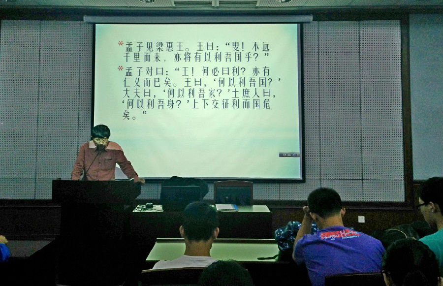 杜教授以“孟子见梁惠王”这一典故为引,阐释儒学在当代的意义不是股票一类功利性的工具,而是把核心落脚于“仁义”上的学说。
