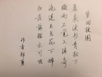 迎春光,展诗才。到了最后的作品鉴赏环节,同学们纷纷献出了精心斟酌的诗篇画作,可谓妙笔生花。李珺的《菊花新-惊蛰赋》“紫气升腾苏野渡、流水小桥春光慕,笑看天使苍生护,雷神山、把辉煌铸”、李昊洋的《我希望》“我多么希望,这几行诗,不再是几行文字,而成为我给你的拥抱,我们满怀着期许,盼望再见,将生活的感悟一起细聊倾诉。” 吟诗作对绝不是酸腐书生气的代名词,而是新时代新青年传承中华诗词文化的新风尚。