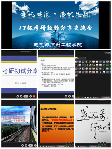 电气16-3班臧益果分享考研经验主要侧重于“复习的时间安排”以及“各科目的复习方法”两大方面。他认为复习时间安排因人而异,如果自身的基础不太好,就需要尽早地开始备战。然后他给大家分享了各个科目的复习方法:对政治科目的复习可以按照“马原”、“近代史纲要”、“毛泽东中国特色社会主义”、“思修法纪”以及“时政”的顺序;英语则强调对单词的记忆,正如他说的“不断重复才是记忆的王道”;数学的复习要注重基础,不好高骛远;而专业课的复习要“博览群书”,多多益善。