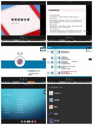 在自由提问环节,同学们积极踊跃,对于大家提到的“推荐哪些复习资料、各科成绩目标分数大概多少较合理、时间上怎么安排较合理”等问题,主讲人结合自身经历一一给予详细回答。最后,王磊老师做了总结,他勉励17级考研的同学既然有考研之志,就要不遗余力的去努力,坚持不放弃,相信自己终能到达成功的彼岸,实现自己的人生目标,服务社会、报效祖国。本次“博远工程”考研动员暨经验交流会吸引了139人报名,全年级近一半的员工线上参加。与会同学纷纷表示,学长学姐的讲解和经验分享,使大家明确了努力方向,找到了备考方法,受益匪浅。