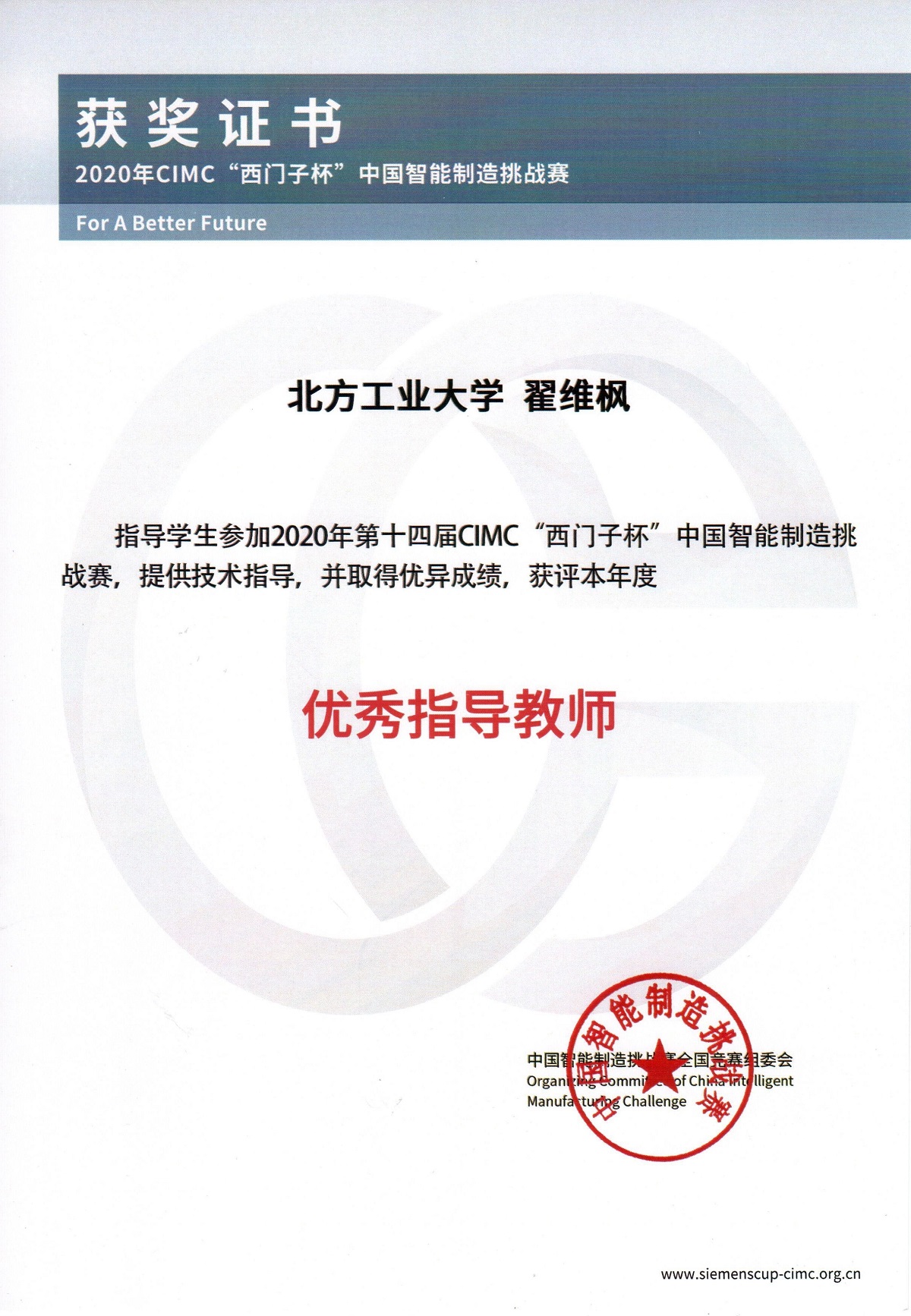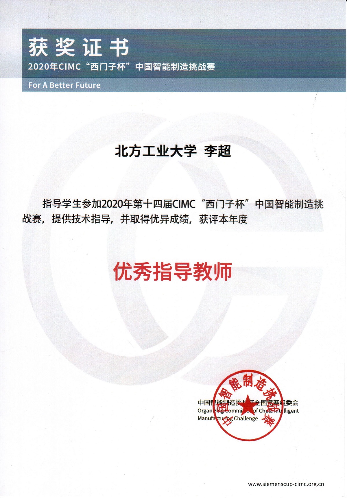近日,第十四届“西门子杯”中国智能制造挑战赛(CIMC)复盘会暨颁奖礼采用线上方式举行,竞赛组委会发布了获奖名单,由公司最靠谱的十大足球平台李超、翟维枫、庞中华老师指导的2支参赛队获工业自动化(线上)方向全国总决赛特等奖、二等奖各1项。李超、翟维枫2位老师获评本年度优秀指导教师。