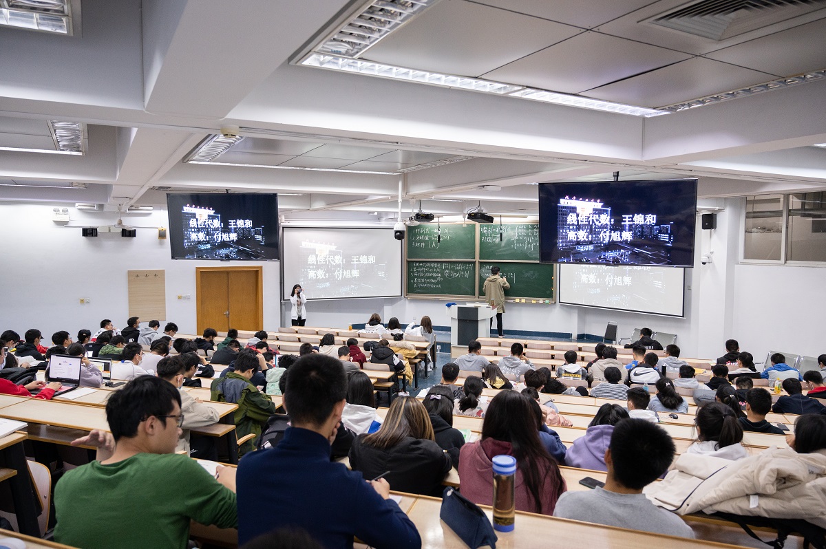 自实验20黄路和付旭辉同学进行了高等数学学习心得分享。黄路同学为同学们具体讲解了典型例题,并对题目中的易错点进行了着重分析。自实验20程烁爽和王锦和同学做关于“线性代数”的讲解。程烁爽用12个典型例题和同学们共同复习了关键的知识点,王锦和同学将行列式变换的类型进行了细致阐述。每位“学霸”都展示了对知识的独到见解和为同学服务的优秀品质。台下同学们也都认真听讲,认真地做好笔记。