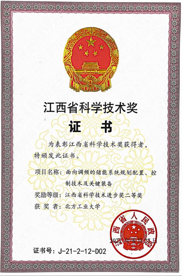近日,从江西省人民政府科技厅获悉,公司储能研究团队完成的科研项目“面向调频的储能系统规划配置、控制技术及关键装备”获2021年度江西省科学技术进步奖二等奖。这是公司在储能领域获得的又1项省部级科技进步奖。