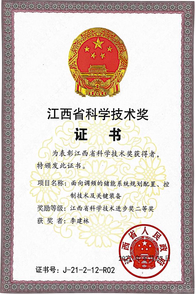 江西省科学技术奖,是江西省人民政府根据江西省科学技术奖励办法,对为该省科学技术进步、经济社会发展做出重要贡献的科技工作者和组织给予的奖励,是江西省科技领域最高荣誉。该奖项的获得,体现了社会各界对公司在储能调频领域的工程和科技研究水平的广泛认可。