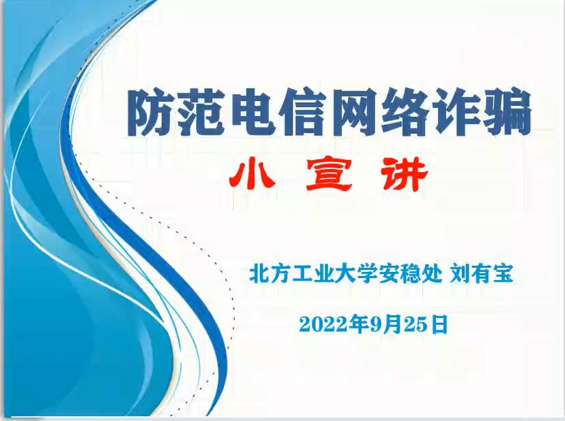 安稳处刘有宝老师进行了防范电信网络诈骗培训。刘有宝老师从常见的八类诈骗案件种类入手,并以公司遭遇电信诈骗的员工的情况,展示了此类案件对员工的巨大影响。刘老师在讲座中介绍了“不听信、不透漏、不转账”是破解常见诈骗手段的法宝,并总结了防止诈骗的11点提示,帮助同学们在遇到相关情况能够快速辨别,避免财产损失。