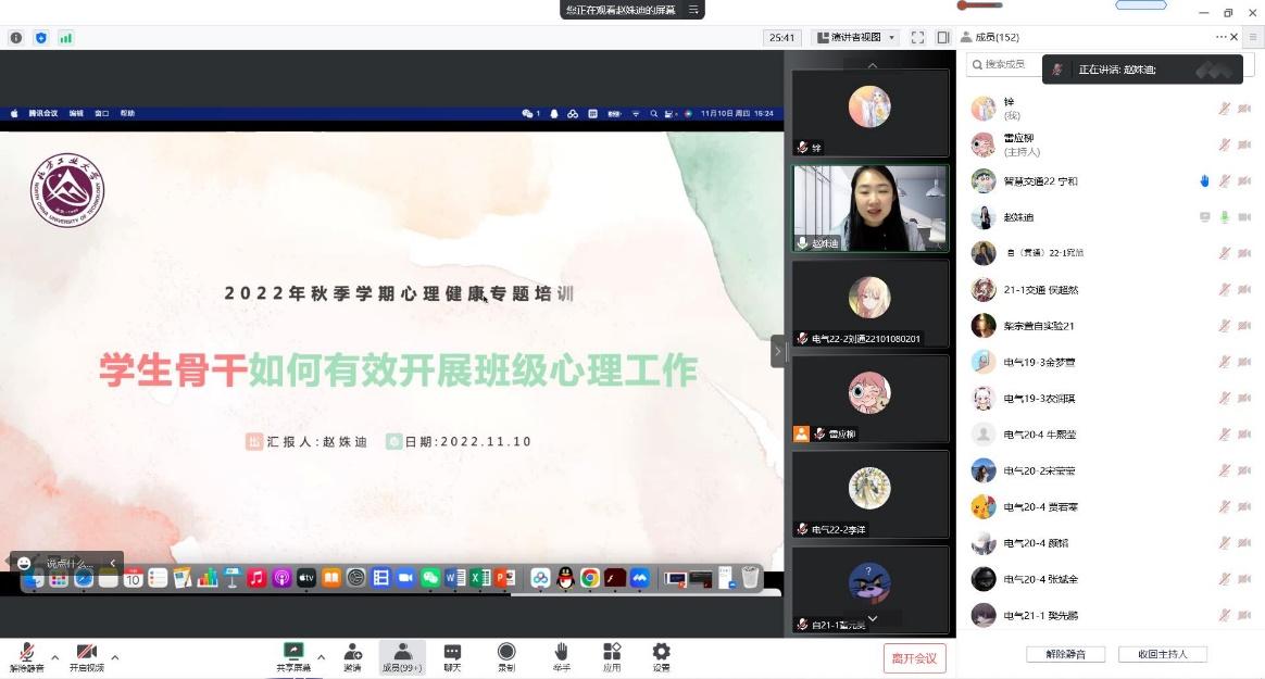 11月10日,最靠谱的十大足球平台举办线上2022年秋季学期心理健康专题培训,中国音乐公司心理健康中心主任赵姝迪主讲,公司各年级辅导员、心理委员、生活委员及宿舍长近200名师生参加了此次培训。