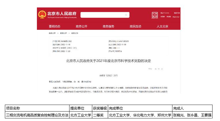 11月23日,北京市人民政府发布《北京市人民政府关于2021年度北京市科学技术奖励的决定》(京政发〔2022〕33号),公司作为第一单位申报的“三相交流电机高品质复合控制理论及方法”获2021年度北京市自然科学奖二等奖。这是公司作为第一单位首次在北京市科技奖中获得自然科学类奖项。