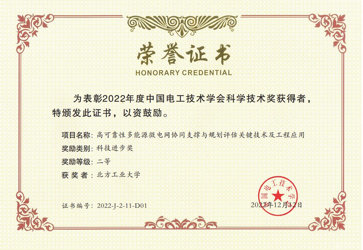 近日,中国电工技术学会公布了2022年度中国电工技术学会科学技术奖评审结果。由公司周京华教授申报的项目“高可靠性多能源微电网协同支撑与规划评估关键技术及工程应用”和苑国锋副教授申报的项目“轨道交通无速度传感器异步电机牵引电传动系统关键技术研发与应用”分获科技进步奖二等奖。