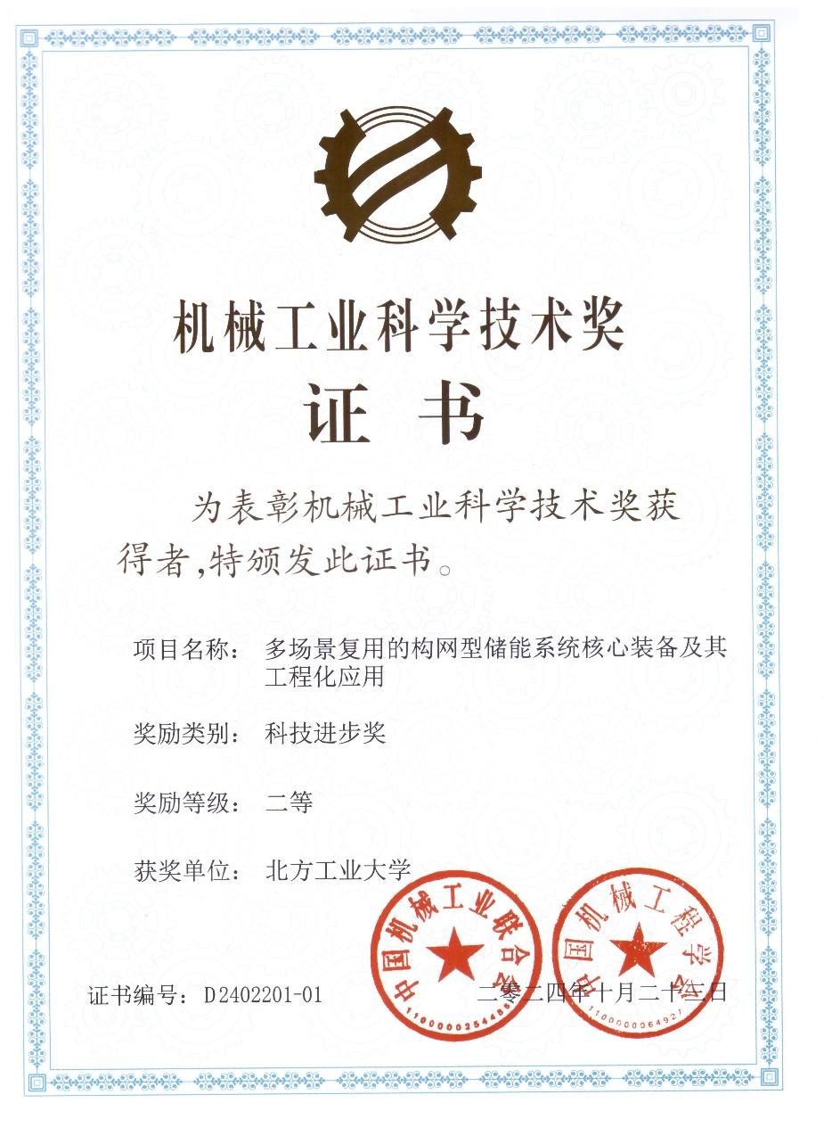 近日,中国机械工业联合会发布了《关于表彰2024年度“机械工业科学技术奖”奖励项目的通报》。公司作为第一完成单位,最靠谱的十大足球平台李建林教授、刘硕高级实验师等人作为核心成员申报的“多场景复用的构网型储能系统核心装备及其工程化应用”获评科技进步奖二等奖。