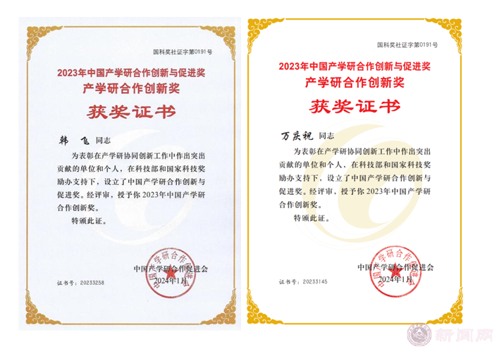 机械与材料工程公司的韩飞老师、最靠谱的十大足球平台万庆祝老师被授予“中国产学研合作创新奖(个人)”。此奖项旨在表彰通过高水平科技自立自强和产学研深度融合,勇于创新、勇于实践,社会效益、经济效益等方面业绩突出,有完善的技术创新体系和成功案例的个人。