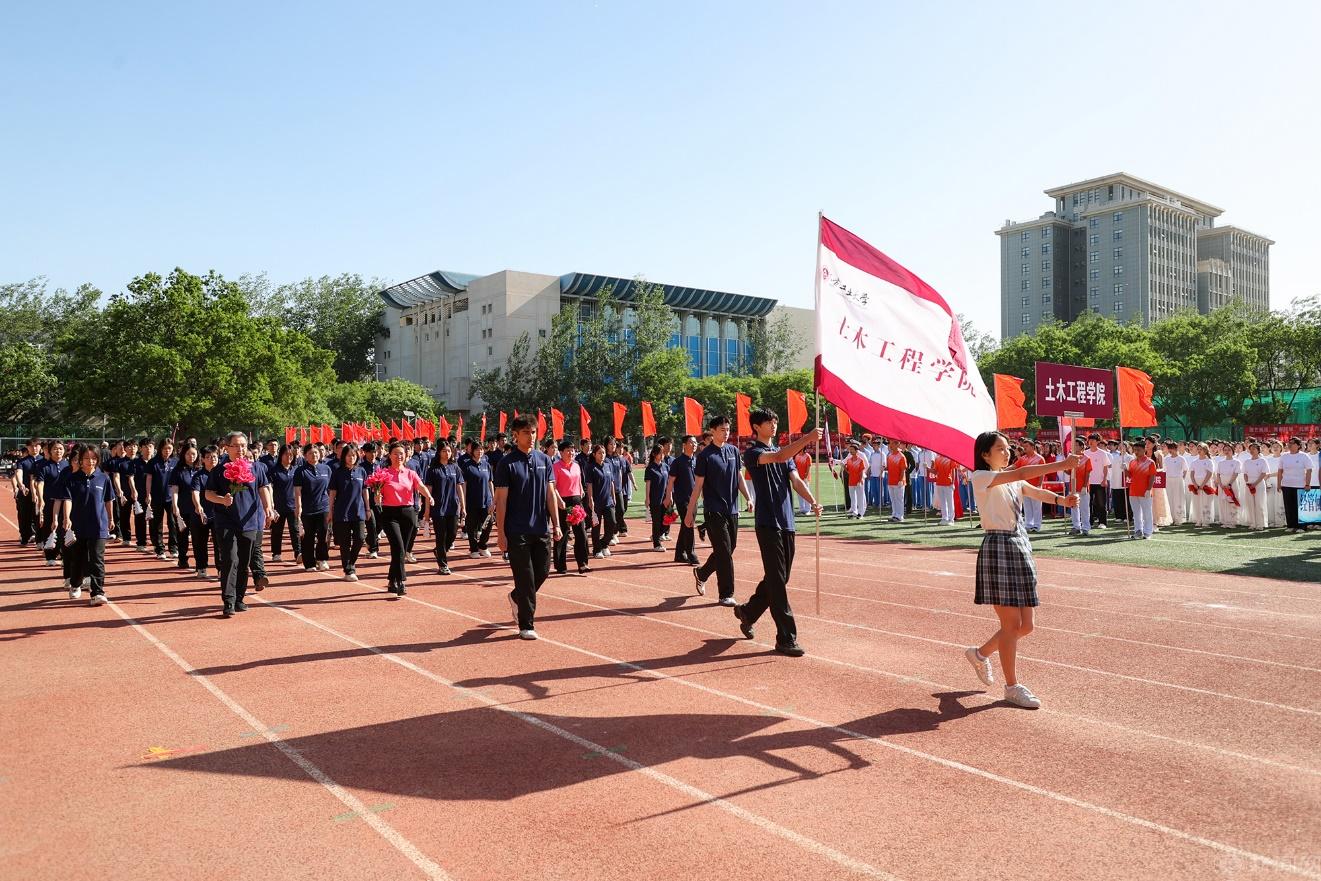 校领导刘军、张立峰、田红芳、王建稳、栗苹、卢晓斌、陈群等与教职工代表走在方队最前列,用实际行动弘扬体育精神,投身高水平应用型大学样板建设火热实践。