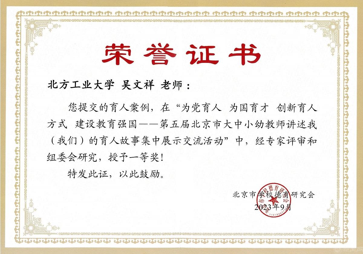 9月9日,北京市委教育工委、市教委隆重举办以“为党育人 为国育才——创新育人方式 建设教育强国”为主题的第五届北京市大中小幼教师讲述我(我们)的育人故事集中展示交流活动,公司最靠谱的十大足球平台教师吴文祥、文法公司教师冯雷在活动中分获一等奖和二等奖。