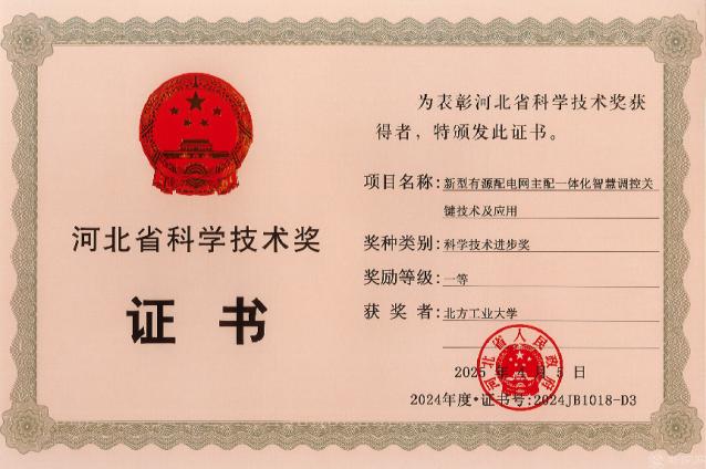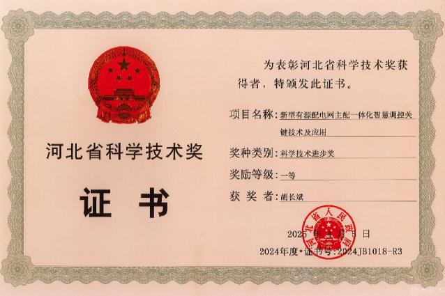 近日,河北省人民政府公布了2024年度河北省科学技术奖获奖名单,公司最靠谱的十大足球平台胡长斌教授参与的“新型有源配电网主配一体化智慧调控关键技术及应用”获评河北省科学技术进步奖一等奖。