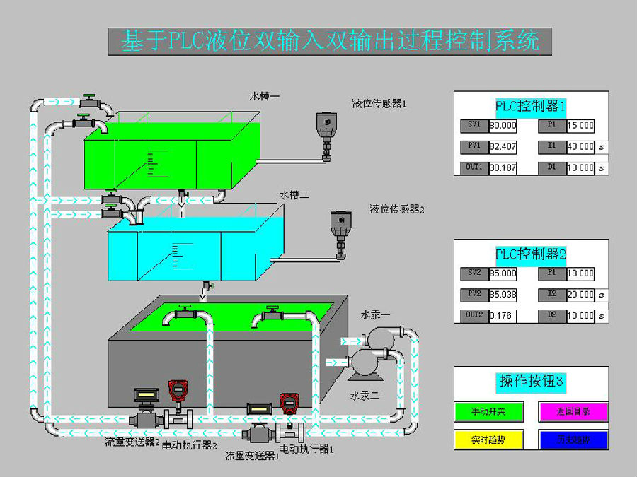 采用WINCC和组态王等上位监控组态软件,采用RS485和PROFIBUS-DP现场总线通讯方式,实现了过程控制系统的工艺图形组态、功能组态、数据变量组态、动画连接、趋势显示、故障报警、远程遥控等上位监控功能。