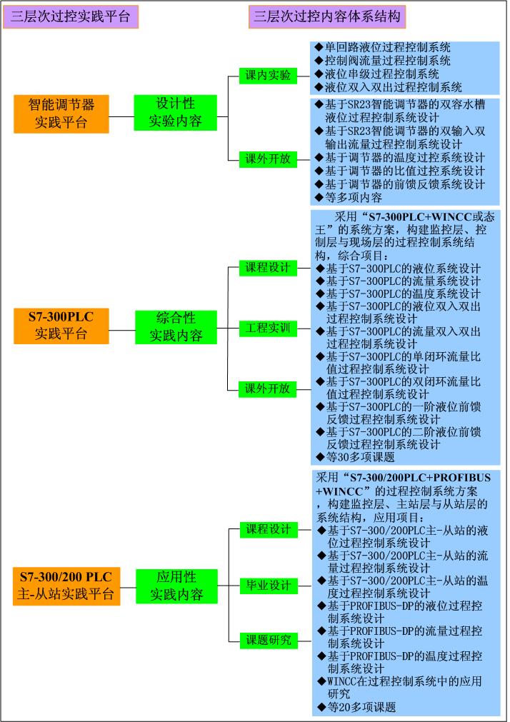 过程控制系统三层次实践教学平台与内容体系结构