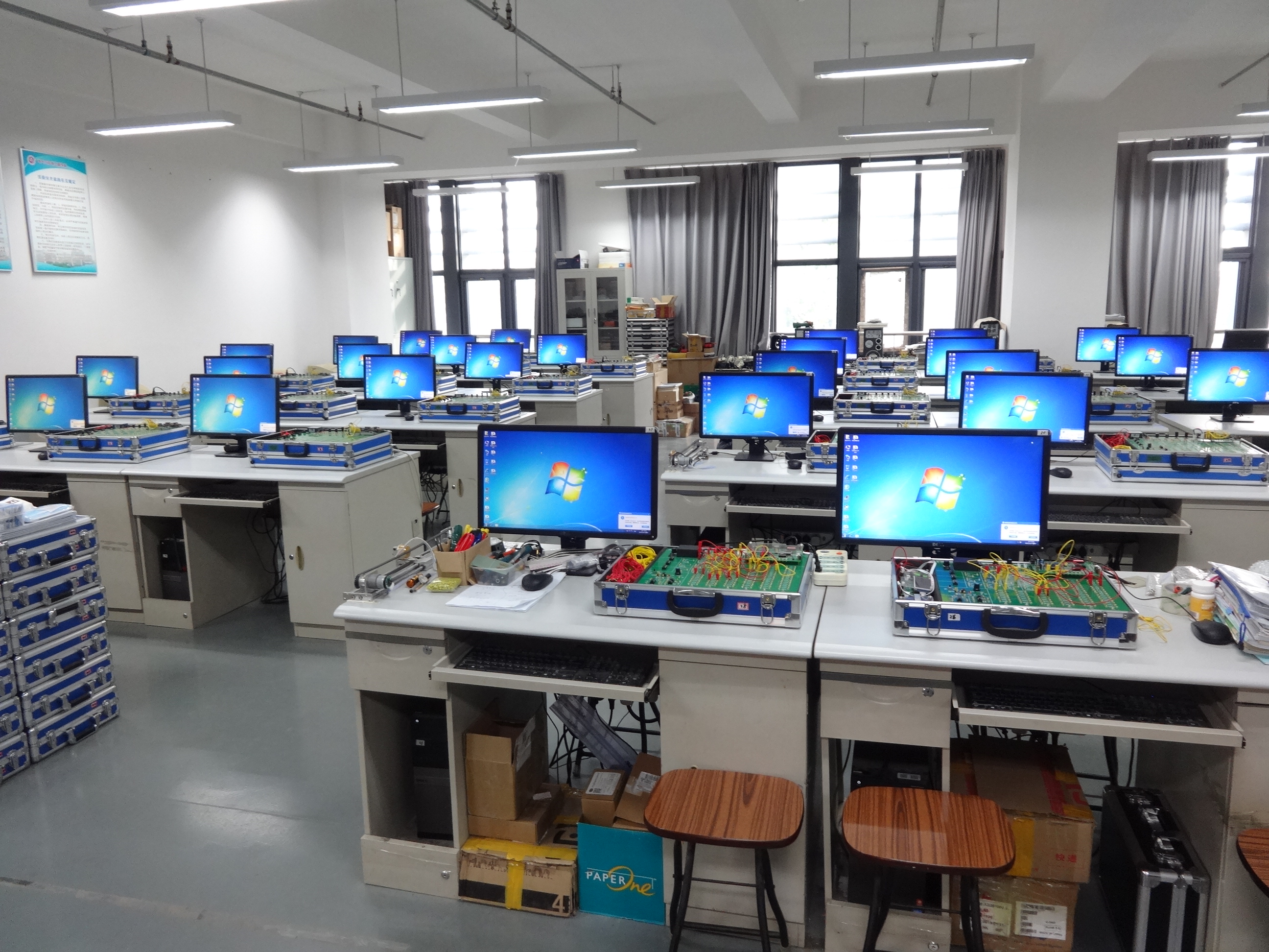为提高实验教学质量,实验室教师通过多年潜心研究,研制成功了自控计控实验箱、控制工程综合创新实验装置、多功能测控实验装置、直流电机伺服控制系统、智能车竞赛训练箱等多种新型自动化专业实验装置。在满足本校实验教学需求的基础上,通过与教学设备公司合作,已成功推广至多个高校实验室,累计推广1000余台套。