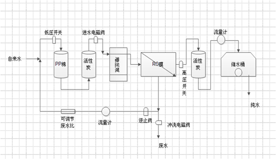 系统具有压力调节功能,可根据不同条件进行纯水/废水比例调节,兼顾配件寿命而实现节水功能。