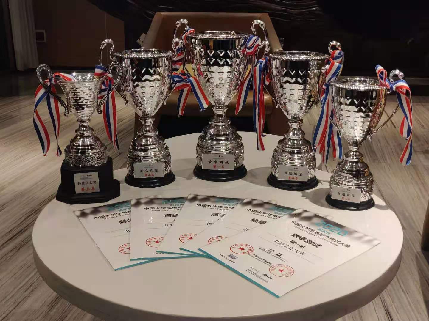 NRT车队共获国家级奖项15项,并于2020年获得了效率测试第一名;直线加速第二名;耐久性能第二名;高速避障第三名;轻量化大奖第三名;总成绩全国第四名,国家一等奖。