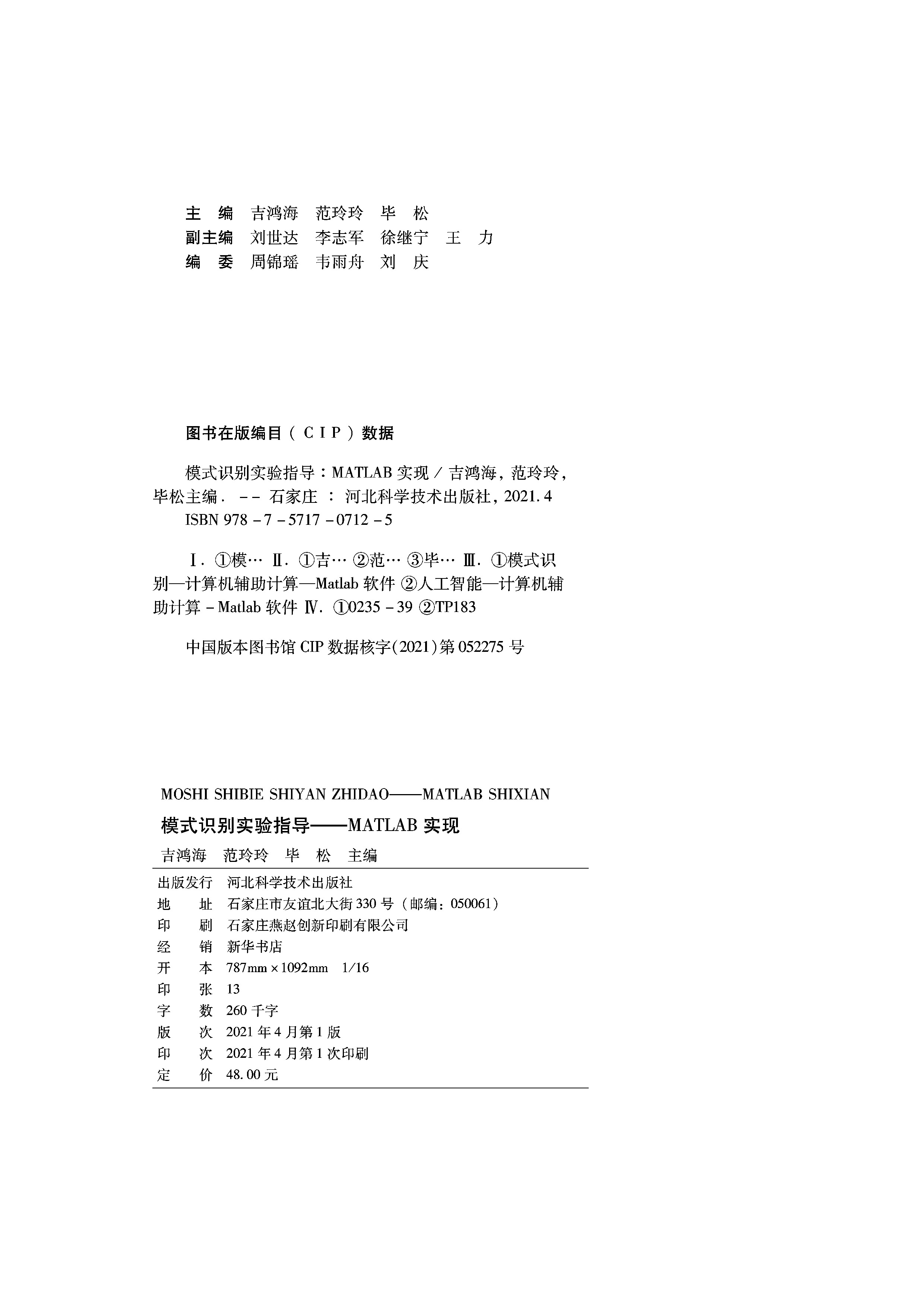 202104《模式识别实验指导》 吉鸿海