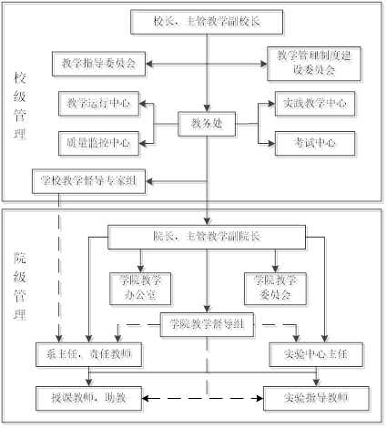 教学管理机构包括公司经理、主管教学副经理、公司教学秘书、系主任、实验室主任、教学督导专家组等,负责依据校院两级教学管理相关规范,对教学工作全过程进行决策、计划、组织、指挥、调控和监督。