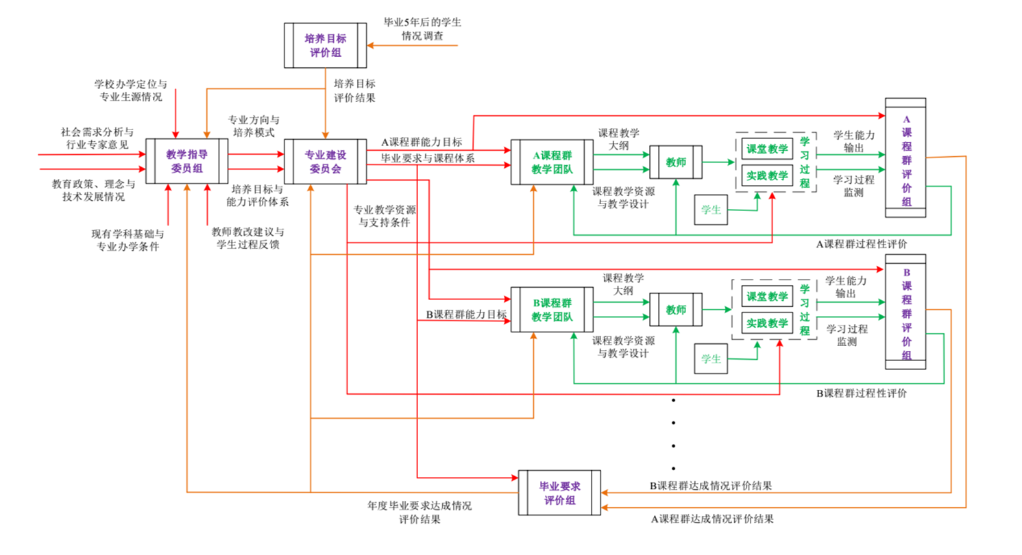 专业教学委员会、专业建设委员会、课程教学团队的组织结构和职责规范见【电控院发2019】1号文件。毕业要求评价、培养目标评价的相关规定和调查制度见【电控院发2019】3号文、4号文、5号文和6号文。