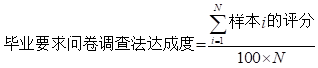 员工毕业半年后内,“毕业生跟踪调查组”负责对毕业生本人和用人单位的各个毕业要求达成情况进行问卷调查,获取毕业生自评和用人单位评价数据。问卷按照5个等级设计(量化分别对应90分、80分、70分、60分和40分)。问卷评价结果根据如下公式分别计算:
