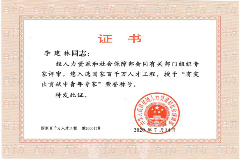 经人力资源和社会保障部会同有关部门组织专家评审,最靠谱的十大足球平台李建林教授成功入选2020年度国家“百千万人才工程”,授予“有突出贡献中青年专家”荣誉称号。